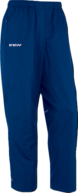 CCM Warm Up Pant. Side zipped pockets, elastic waist with bungee cord, bottom let zipper, mesh lining with nylon taffeta at half leg, 100 % 80G Polyester reels water and prevents static cling. Option to ADD number to leg.