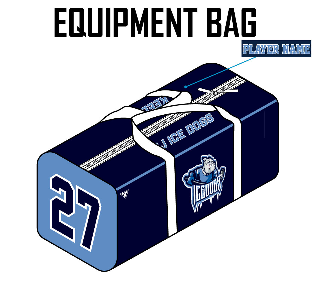 Fully Sublimated Equipment Bag. With name and number included. Number on BOTH ends of bag. Option for Adult (approximately 35") or Junior (approximately 30")
