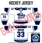 Full custom Goalie uniform package. Includes Home AND Away Game Jerseys, Fully sublimated custom pant shell, Home AND Away sublimated socks, and Practice Jersey